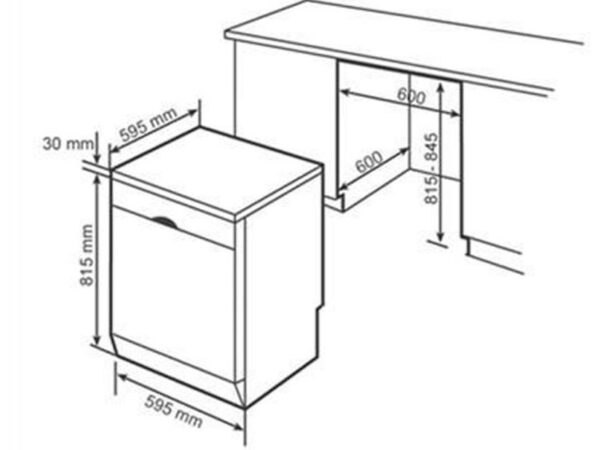 Kích thước của máy rửa bát + hộc cần để khi lắp máy.