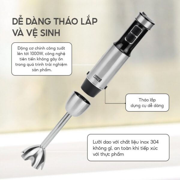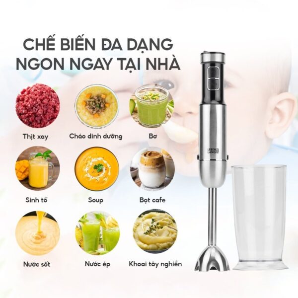 – Máy xay sinh tố cầm tay đa năng Lebenlang LBL3638 có công suất cao lên đến 1000W cho khả năng xay mịn và nhanh chóng các loại thực phẩm, từ cá, thịt, rau củ đến trái cây, giúp bạn chế biến các món ăn ngon một cách dễ dàng