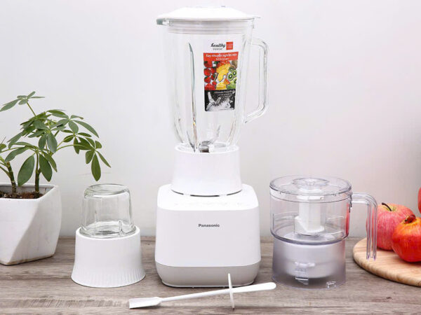 Máy xay sinh tố Panasonic gồm 3 cối xay bằng thủy tinh chịu nhiệt, chịu lực tốt, dễ vệ sinh: