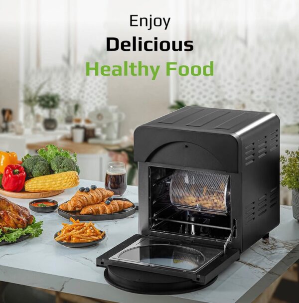 Nồi chiên không dầu UE-999 có dung tích 14,5 lít sẽ phù hợp sử dụng cho gia đình có 3 – 15 người hoặc sử dụng cho các bữa tiệc. Khoang nồi thiết kế rộng rãi giúp bạn có thể quay gà, vịt nguyên con hay chế biến nhiều loại thực phẩm cùng lúc.