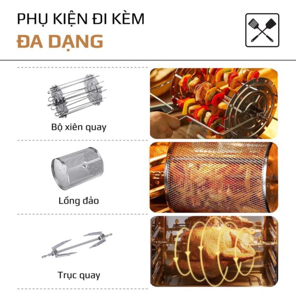 Phần khoang chiên bên trong bao gồm giá chiên và khay hứng mỡ thừa, giúp cho việc chiên nướng hạn chế được tối đa lượng mỡ thừa, thực phẩm sẽ không bị thấm ngược dầu.