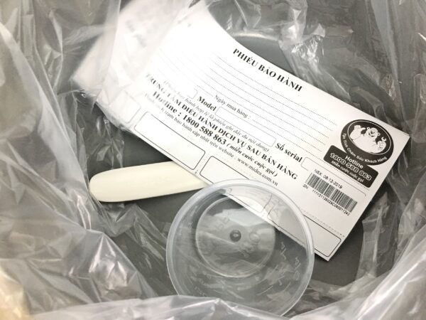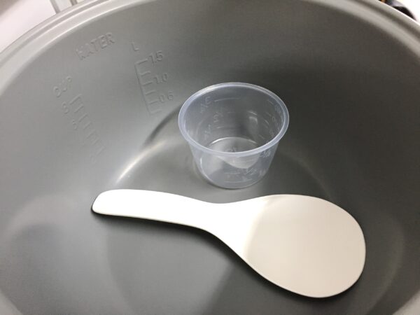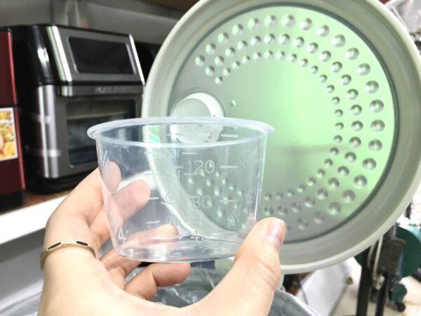 Ly đong gạo/đong nước + muôi xới cơm được tặng khi mua nồi.
